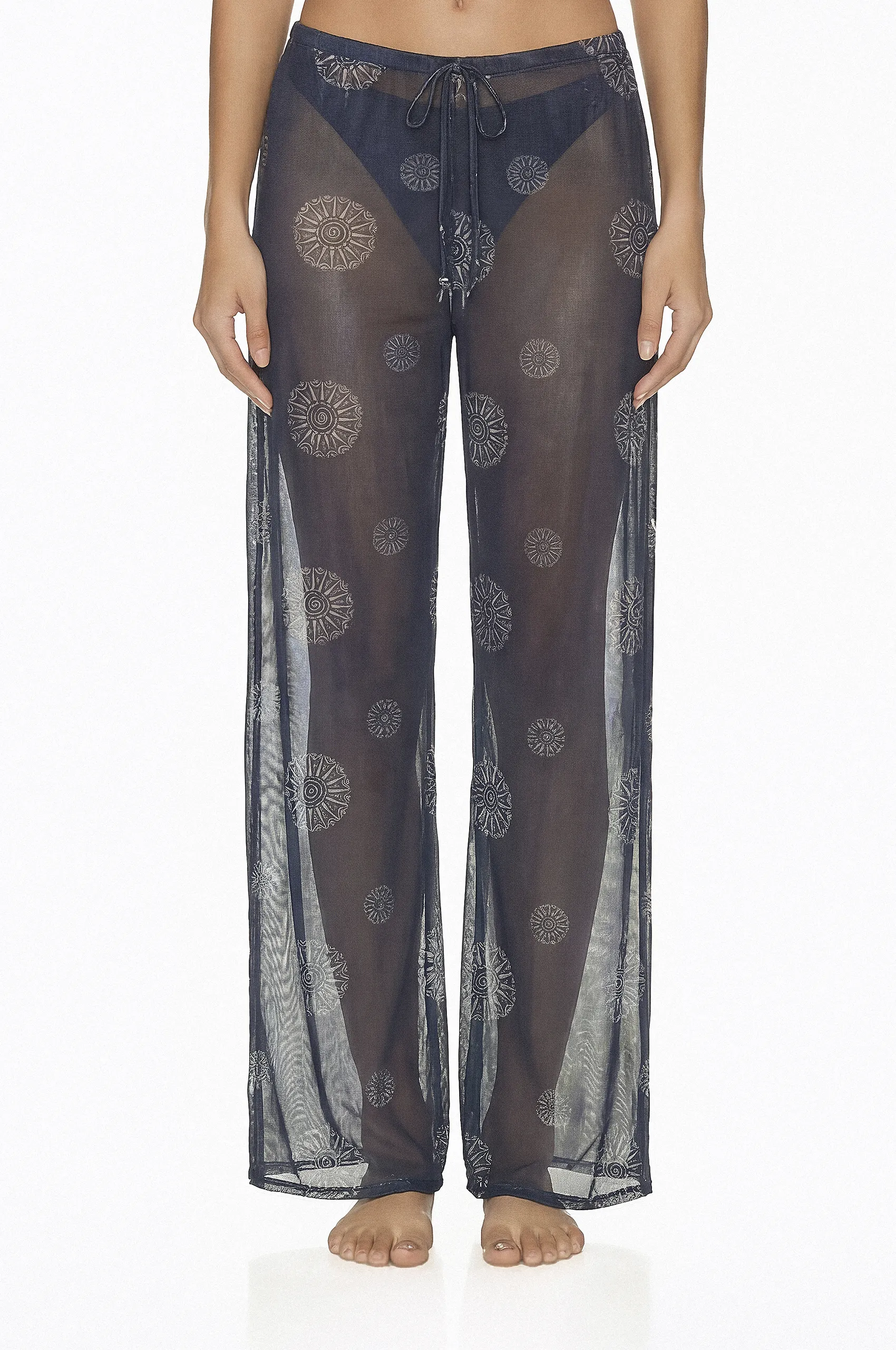 Pantalón descaderado pretina extra delgada por cordón, bota ancha.